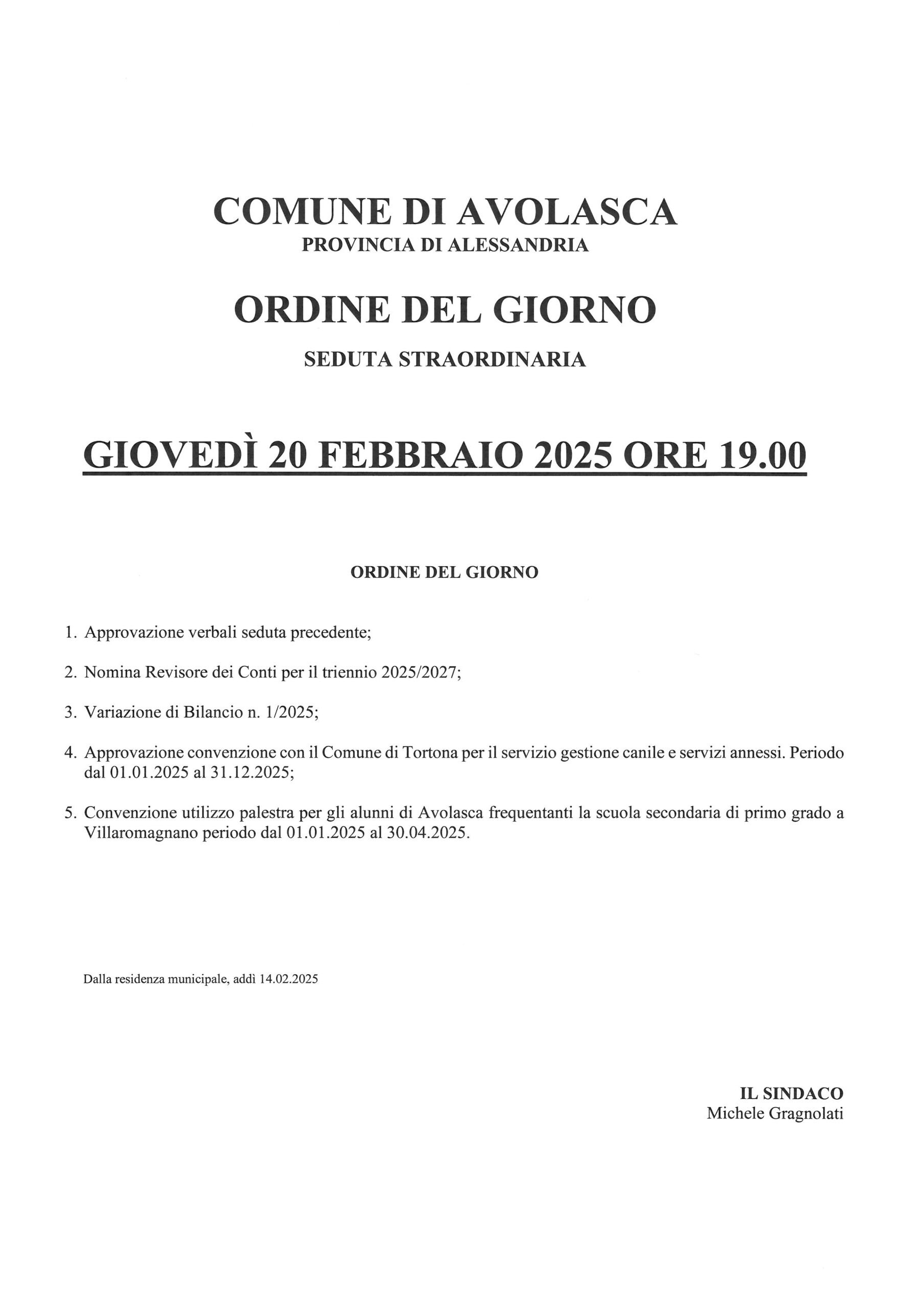 Convocazione Consiglio Comunale 15 DICEMBRE 2025 ORE 21.00